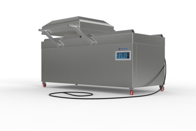 The robust, stainless steel AMAC M2-430EM vacuum packer is standard equipped with a Busch vacuum pump. The machine is ETL listed and complies with CE standards.